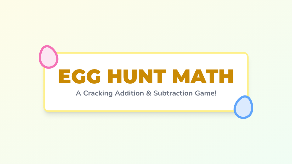Visual step-by-step slides that explain the "Egg Hunt Math" game rules and procedures to students, ensuring clear expectations for a hands-on activity.