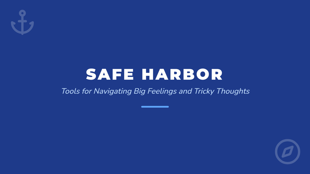 A visually calming slide deck using a maritime theme to introduce anxiety management and reality testing. Uses high-contrast visuals and simple, clear language appropriate for a 5th-grade student.