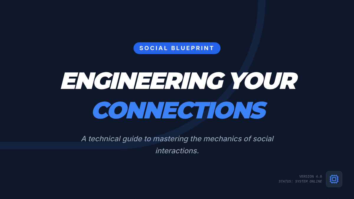 A 5-slide visual presentation for the Social Blueprint series, introducing the core concepts of 'tuning in', the 'tease filter', and 'bridge building' using an engineering aesthetic.