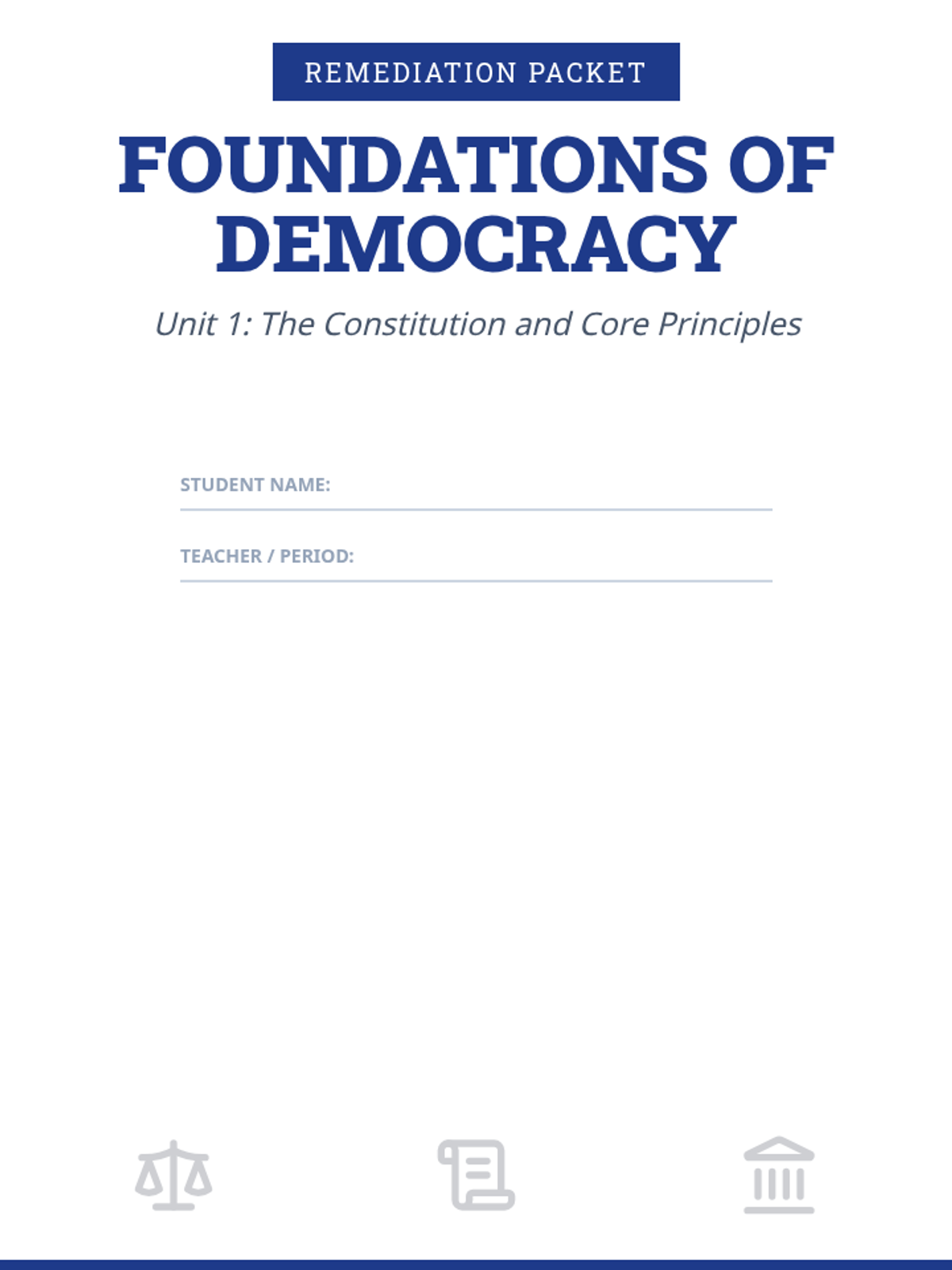 Consolidated Master Packet for Unit 1: Foundations of Democracy. Includes 6 days of readers and worksheets, a skill lab, unit quiz, and answer key in one continuous document.