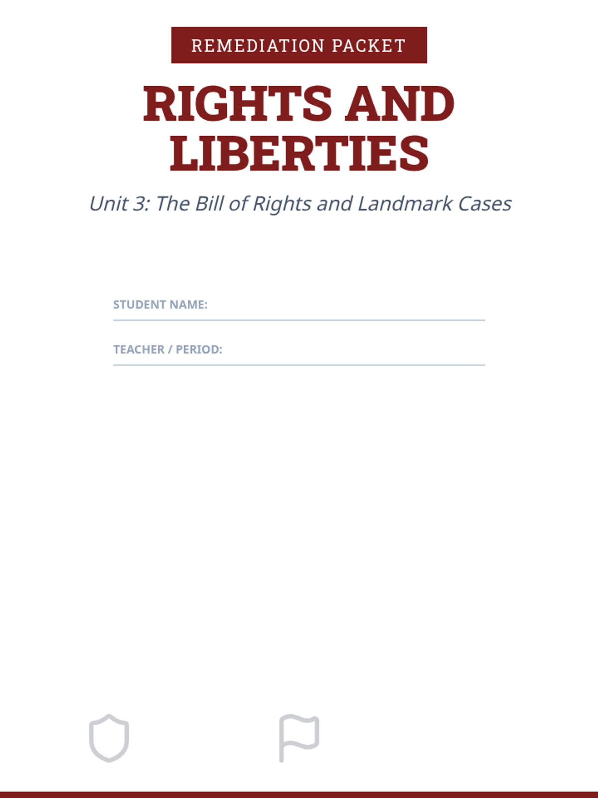 Consolidated Master Packet for Unit 3: Rights and Liberties. Includes 6 days of readers and worksheets, a skill lab, unit quiz, and answer key in one continuous document.