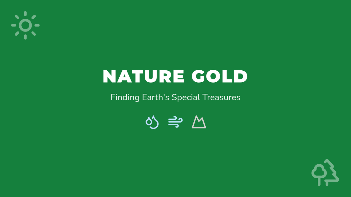 A vibrant and visual slide deck introducing kindergarteners to natural resources. It covers the sun, water, air, trees, and rocks with large icons and simple explanations.