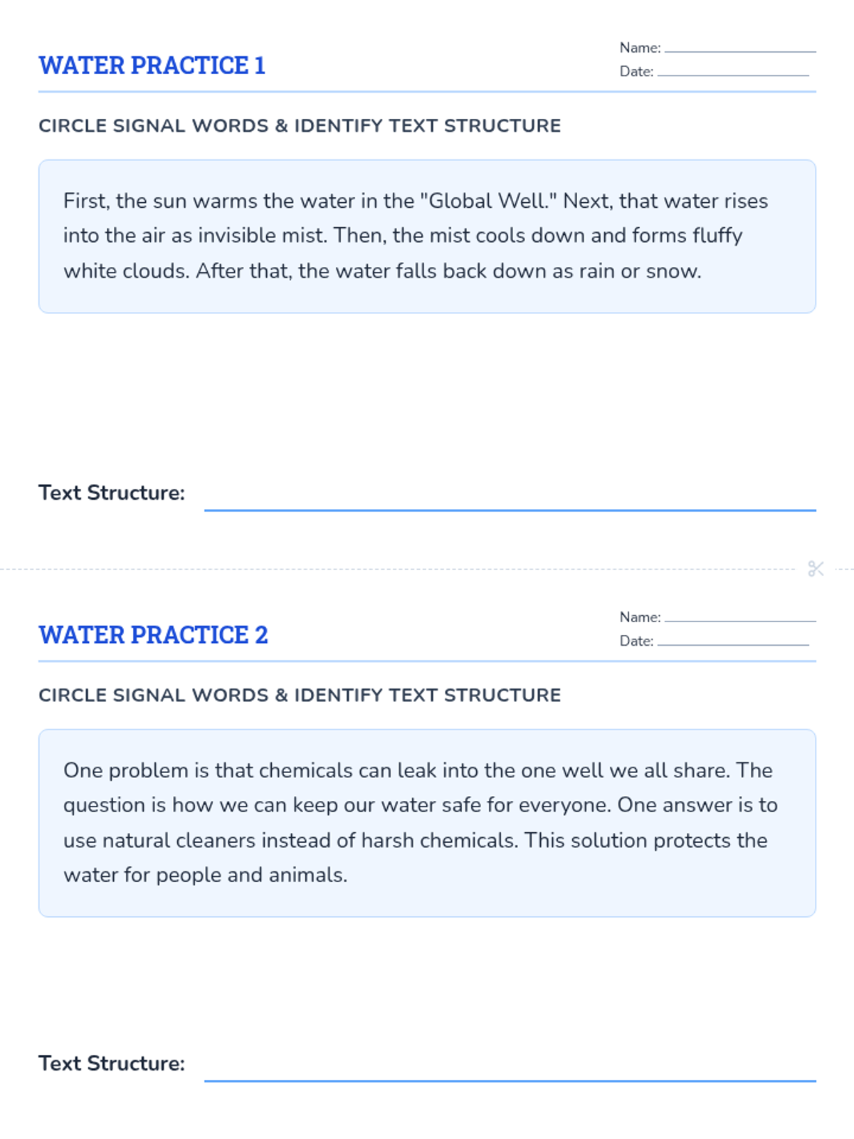A set of 8 advanced task cards with informational passages, main idea questions, and evidence-based detail searches.
