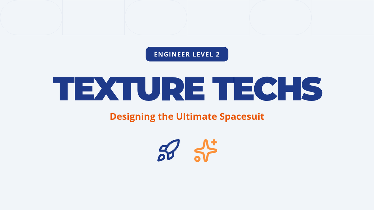 A 6-slide presentation for 2nd Grade Texture Techs. Features an astronaut-themed hook, vocabulary (texture/flexibility), lab instructions, and a mastery check.