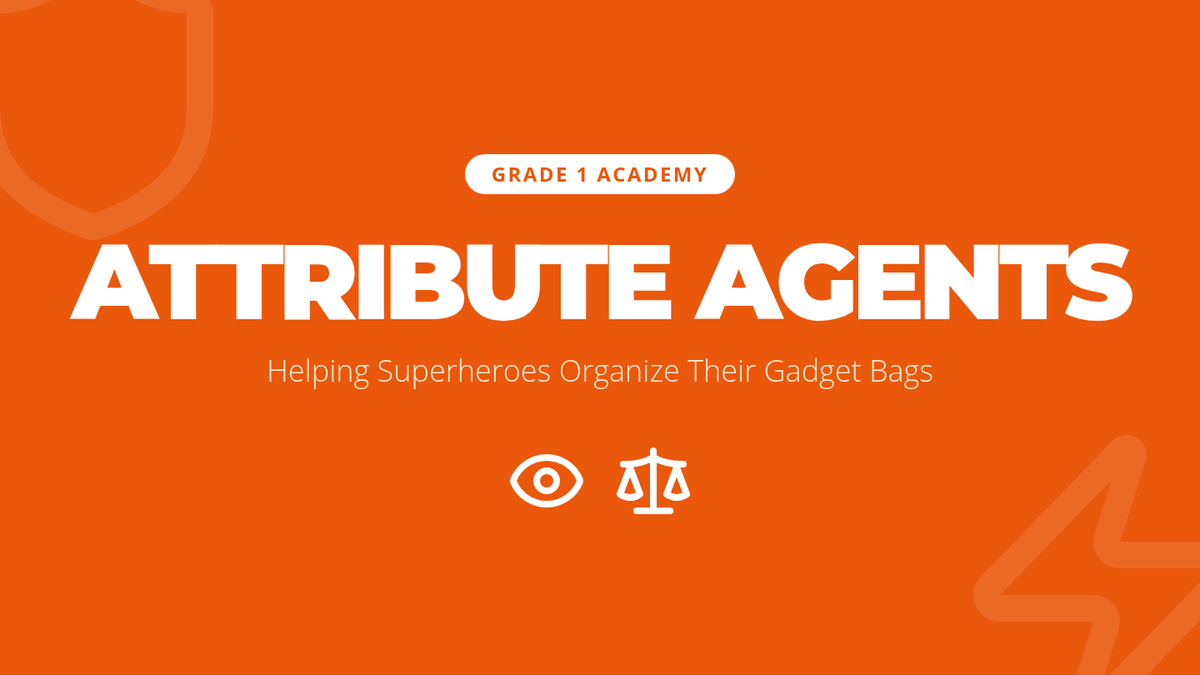 A 6-slide presentation for 1st Grade Attribute Agents. Features superhero-themed hooks, vocabulary (size/weight), activity instructions, and a mastery check.