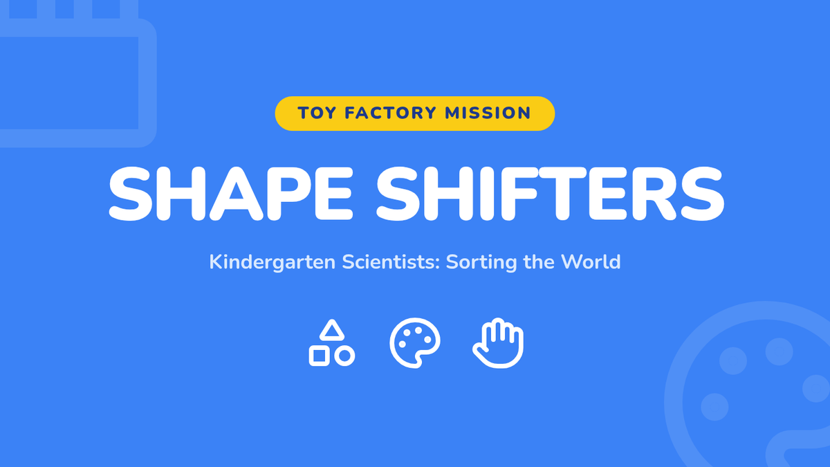 A bright and visual 6-slide presentation for Kindergarten Shape Shifters. Features a toy factory story, texture vocabulary, and interactive sorting checks.