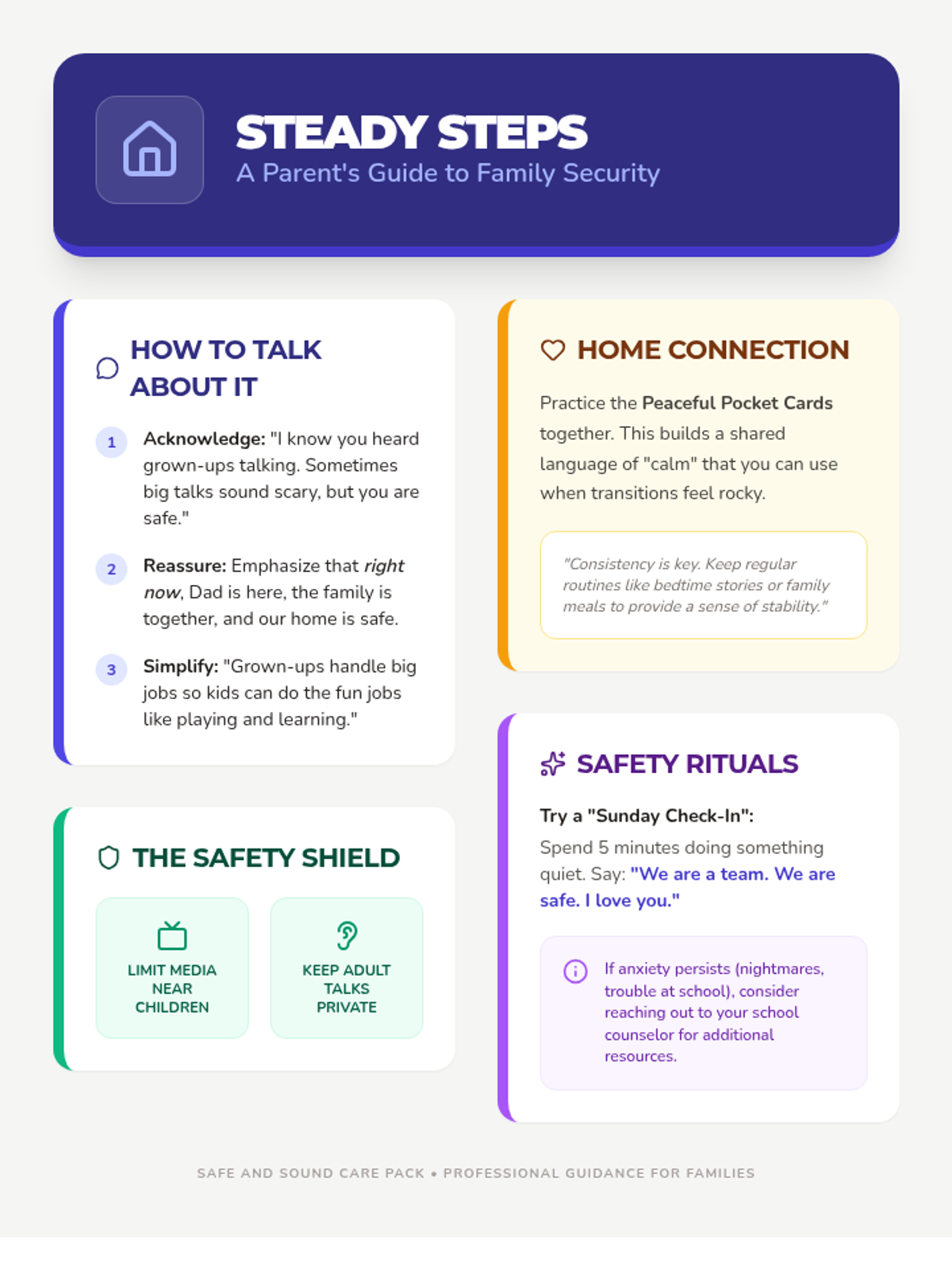 A guidance handout for parents to help them navigate difficult conversations with children about immigration and safety, providing concrete strategies and talking points.