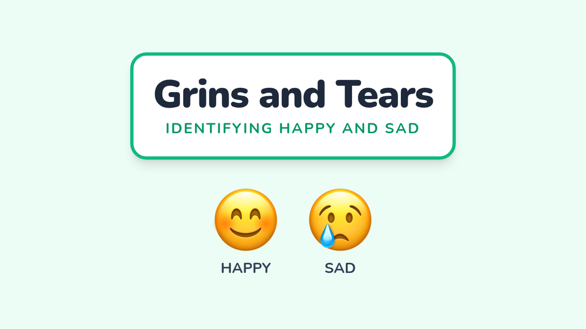 Printable matching cards for the 'Happy' and 'Sad' lesson. Includes large emoji category cards and smaller frames for real-life photos with descriptive placeholders to help teachers source appropriate visual aids.