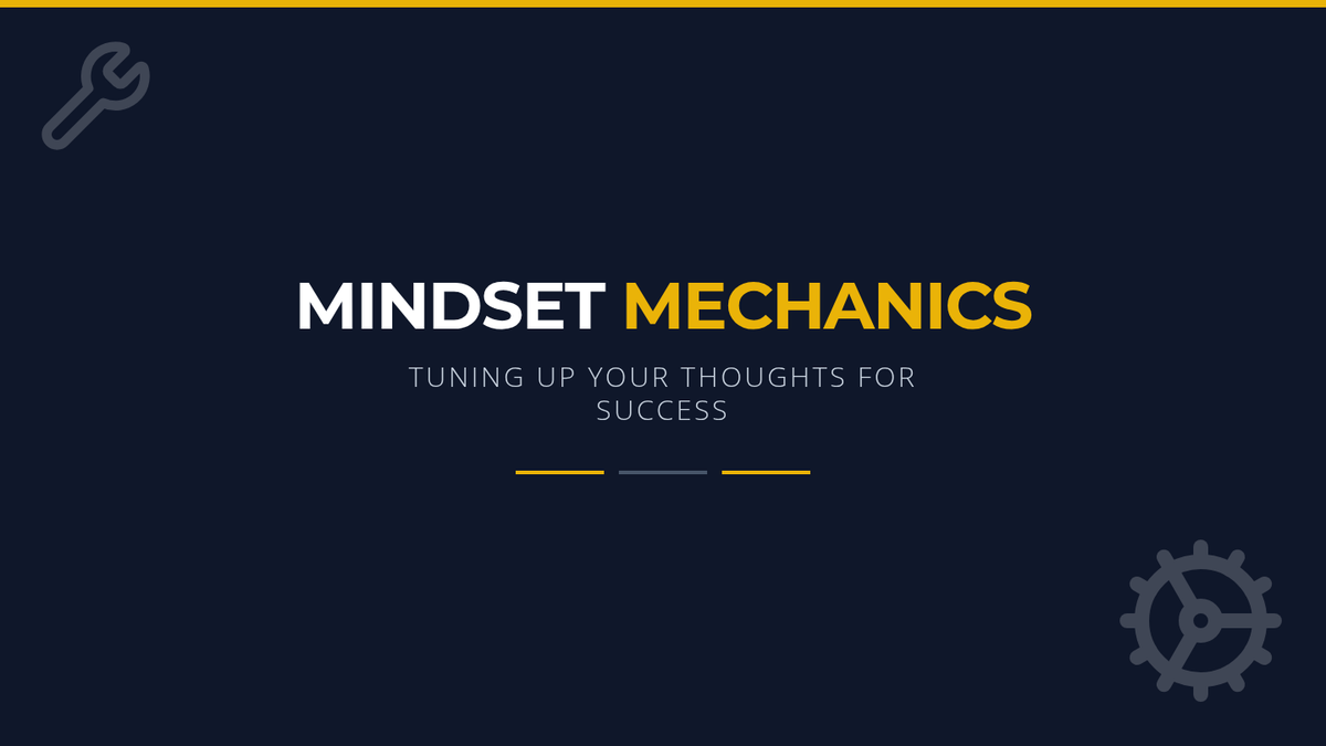 A presentation introducing 'Mindset Mechanics' to help students identify negative self-talk and apply four key coping strategies: positive reframing, deep breathing, grounding, and 'I' statements.