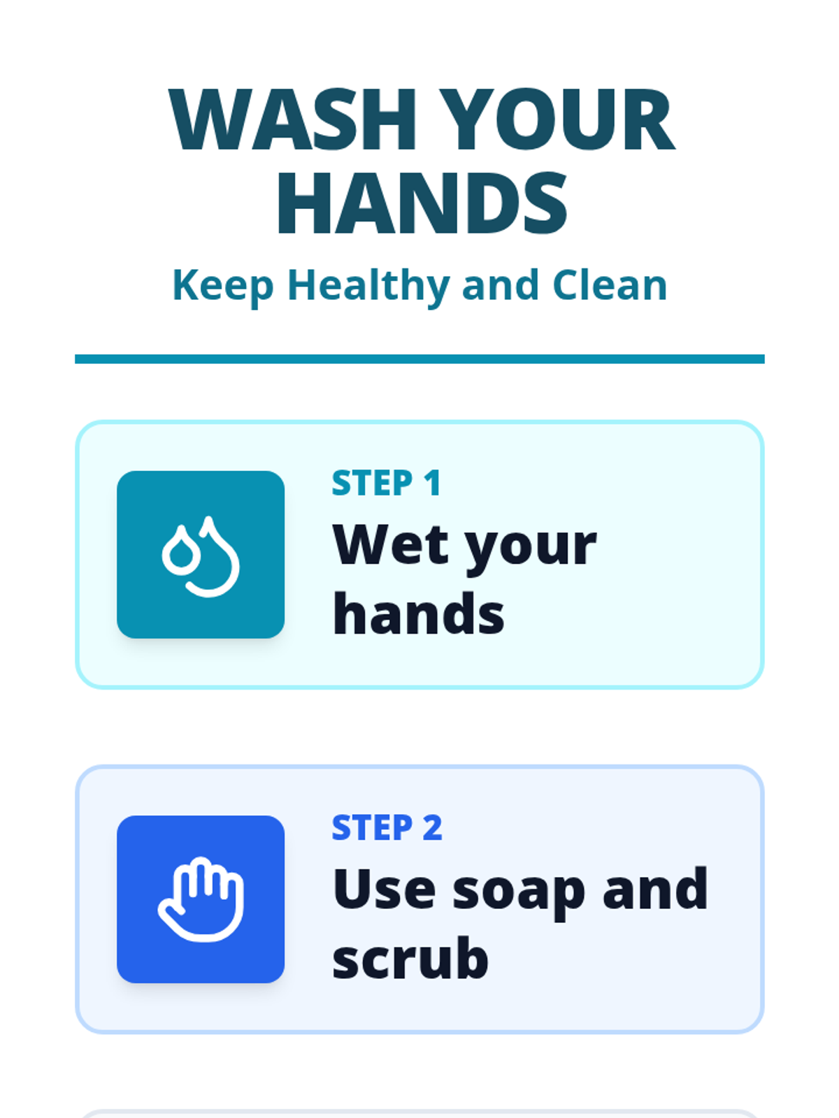 A simple, high-visibility hand washing guide for seniors to follow after using the bathroom.