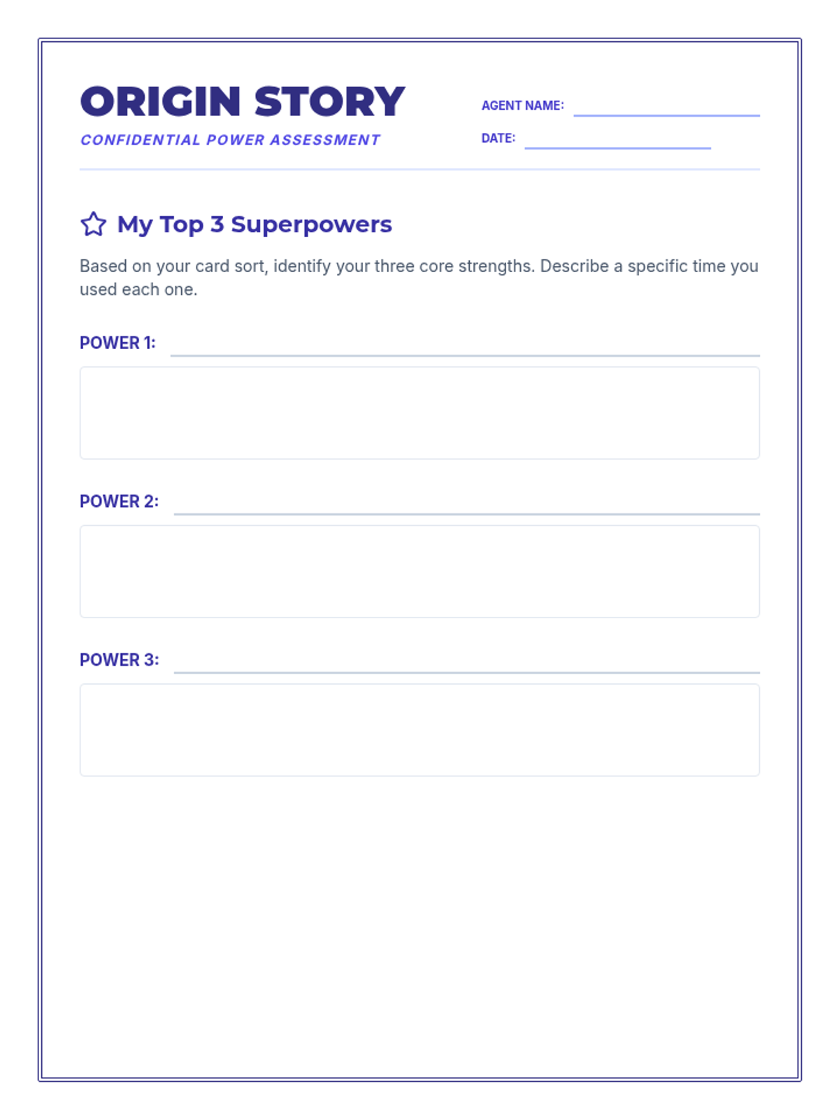A self-reflection worksheet where students document their top strengths, analyze their social roles, and connect their talents to future community impact and career goals. Features expanded work areas.
