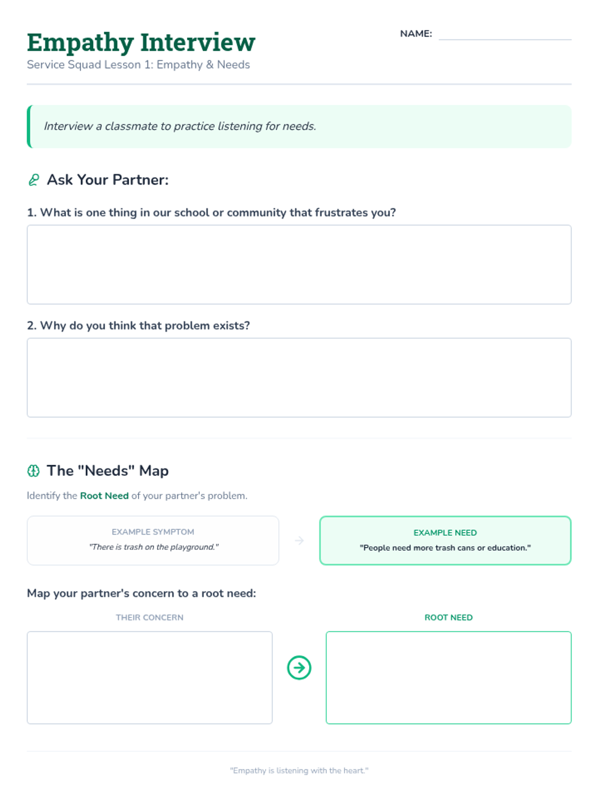 Clarification Quest Worksheet
