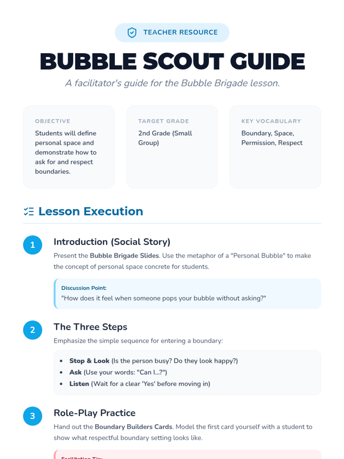 A teacher-facing guide for facilitating the Bubble Brigade lesson, including learning objectives, lesson flow, discussion prompts, and strategies for handling common misconceptions. (Revised for page breaks and alignment)