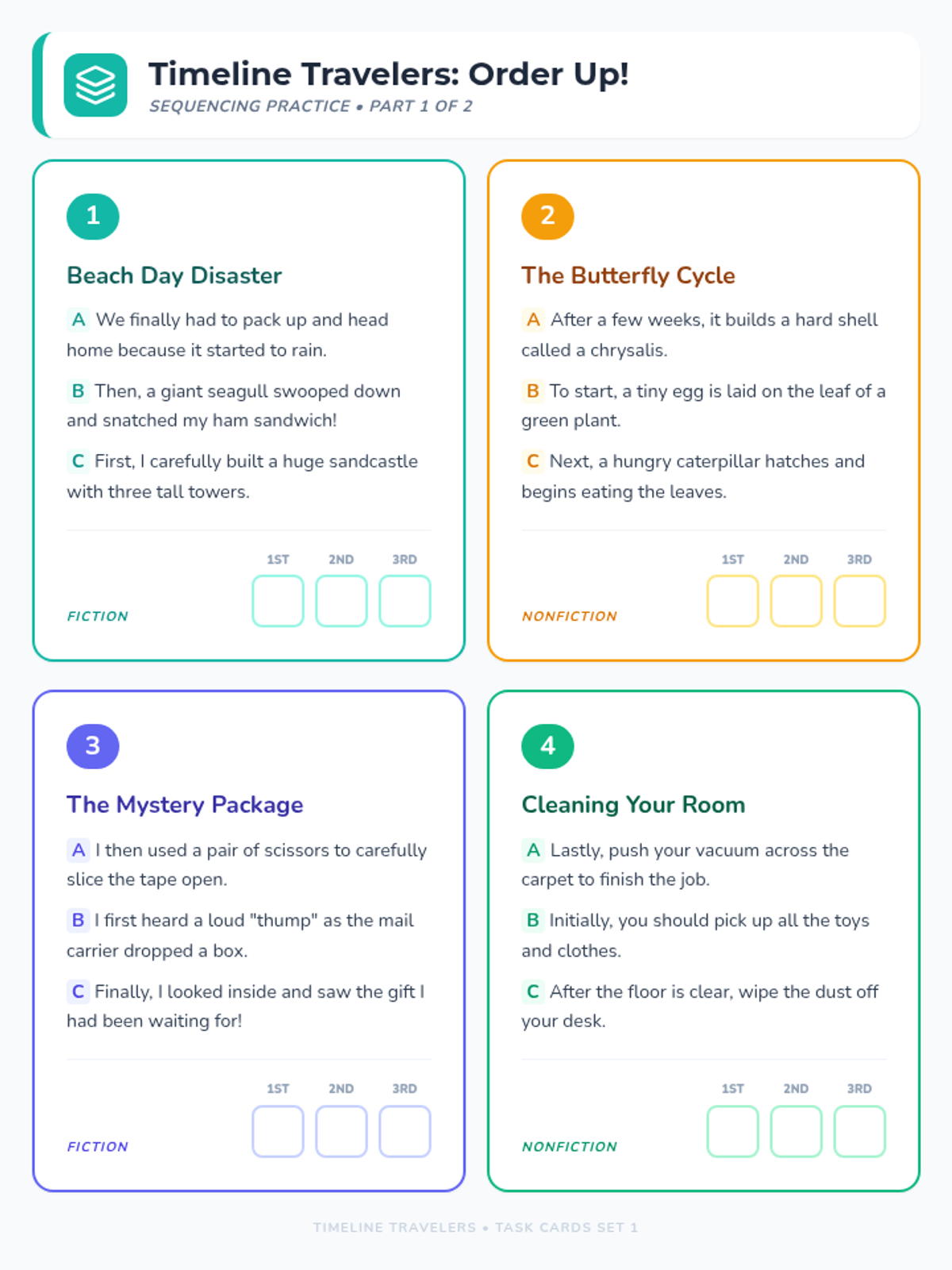 Eight construction-themed task cards for small group review of sentence structures. Each card challenges students to analyze, classify, or build simple, compound, complex, and compound-complex sentences. Features fixed page breaks and standardized terminology.