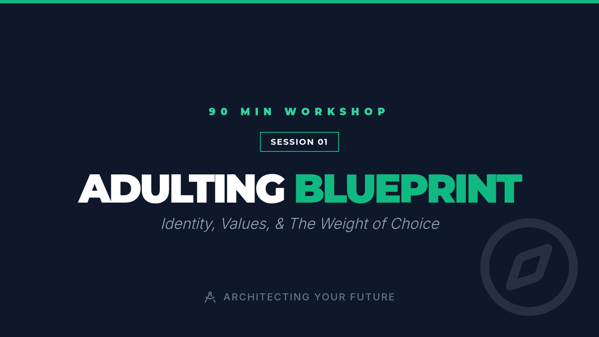 A 90-minute workshop slide deck for young adults, integrating the logic of life direction, values sort, responsibility audits, and future-self reflection. Revised to improve contrast and section references.