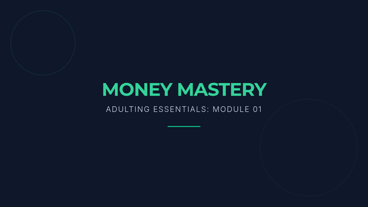A professional slide deck covering financial basics, the 50/30/20 budgeting rule, and practical money management tips for adults.