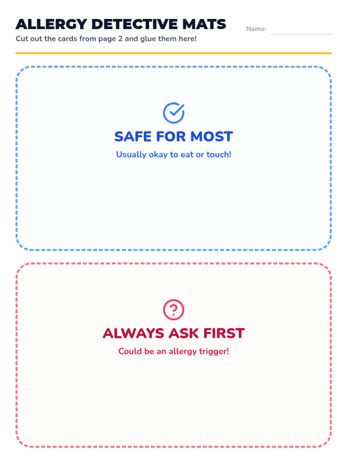 A printable sorting activity for students to identify common allergens and safe items. Encourages hands-on learning through cutting and categorizing.