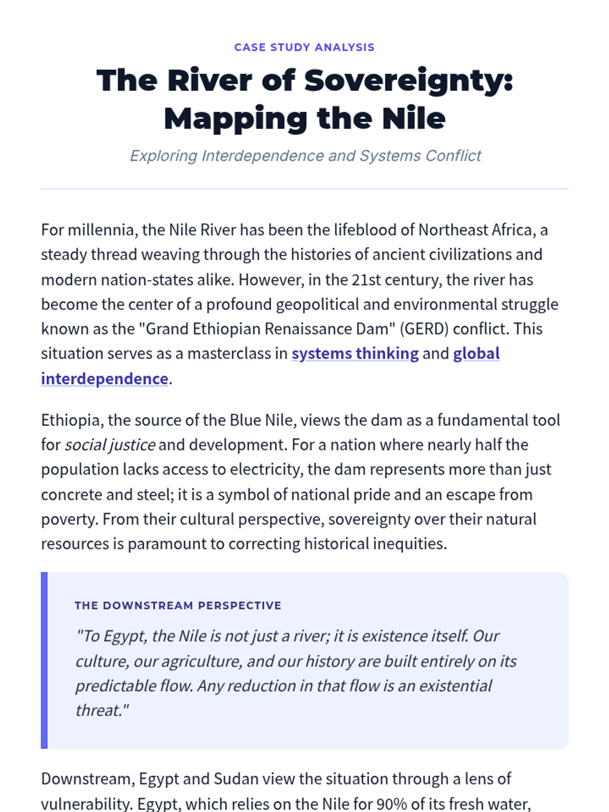 A complex reading passage for 11th graders focusing on the Grand Ethiopian Renaissance Dam (GERD) as a case study for interdependence and systems thinking.