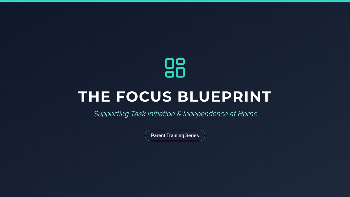 A professional slide deck for parent training focusing on task initiation strategies, First/Then boards, checklists, and summer planning for students with autism.