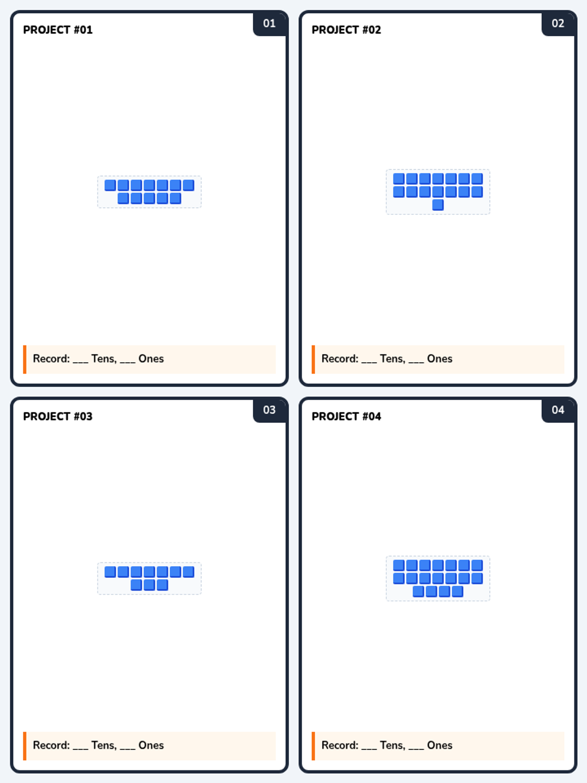 8 task cards for a math center where students use Unifix cubes to practice trading 10 ones for 1 ten. Updated visuals for consistency.