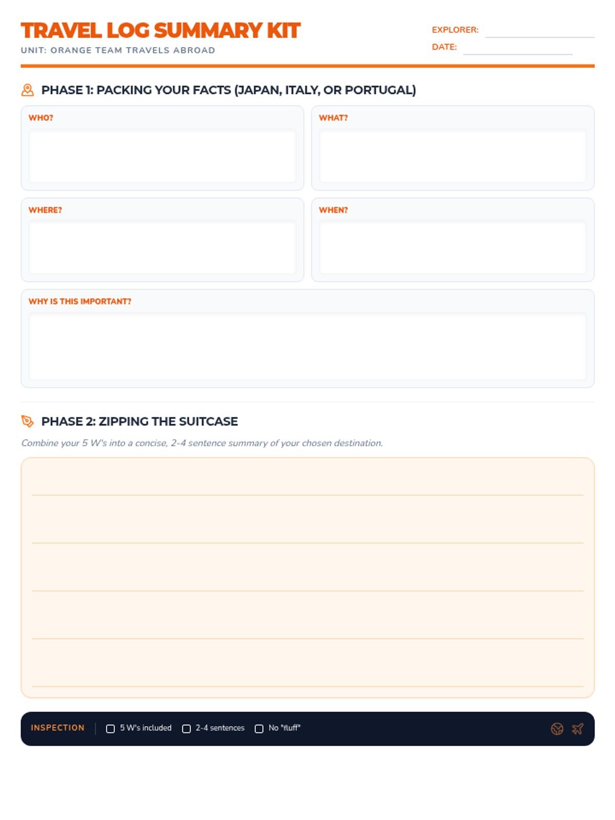 A brainstorming worksheet designed to help students expand basic ideas from a graphic organizer into detailed paragraphs. It uses a structured three-step 'Stretch' process: identifying the main point, adding sensory details, and explaining the significance.