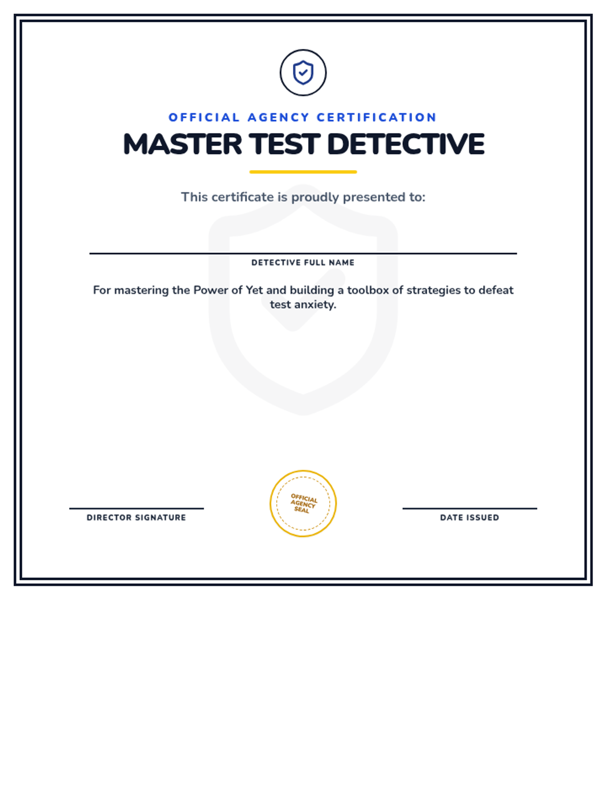 Final revision of Master Test Detective graduation certificate. Corrected horizontal and vertical alignment of signature elements, darkened sub-labels for readability, and optimized for single-page printing.