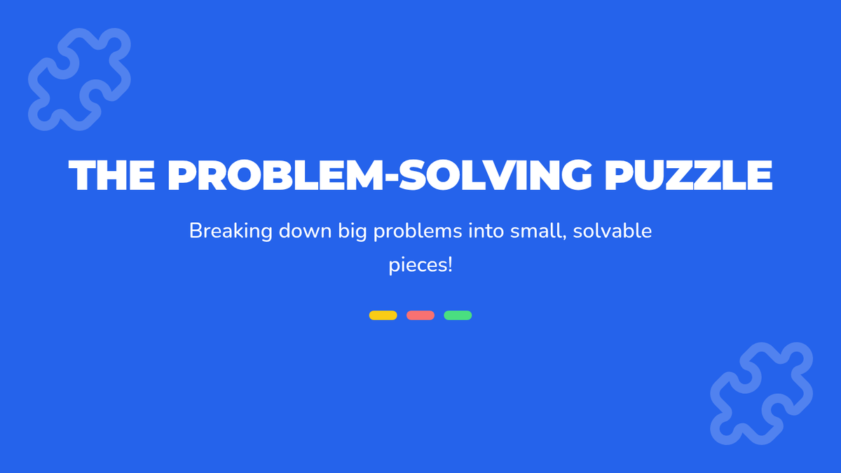 An instructional slide deck using a puzzle analogy to teach conflict resolution. It breaks down social problems into manageable parts: facts (edges), feelings (middle), and collaborative solutions (final picture).