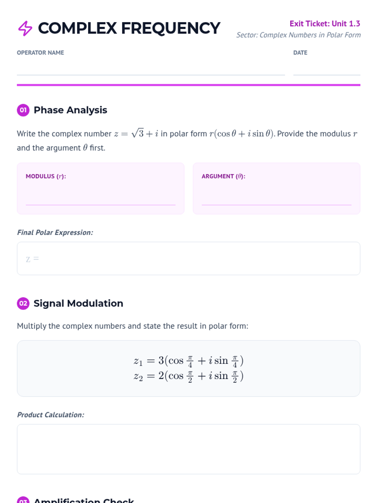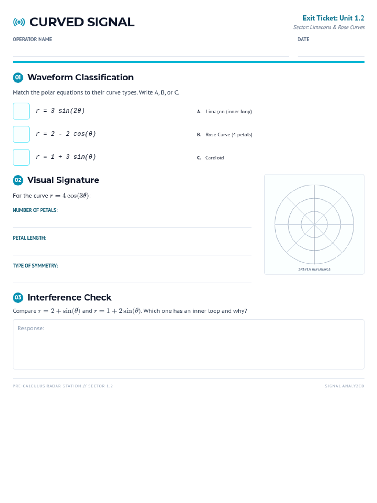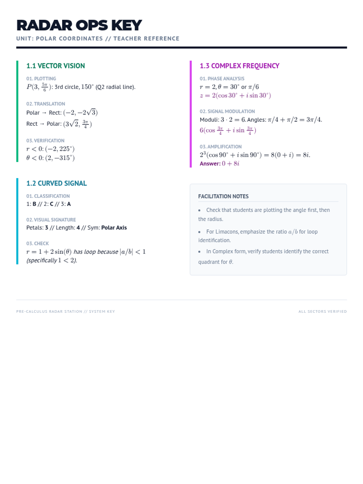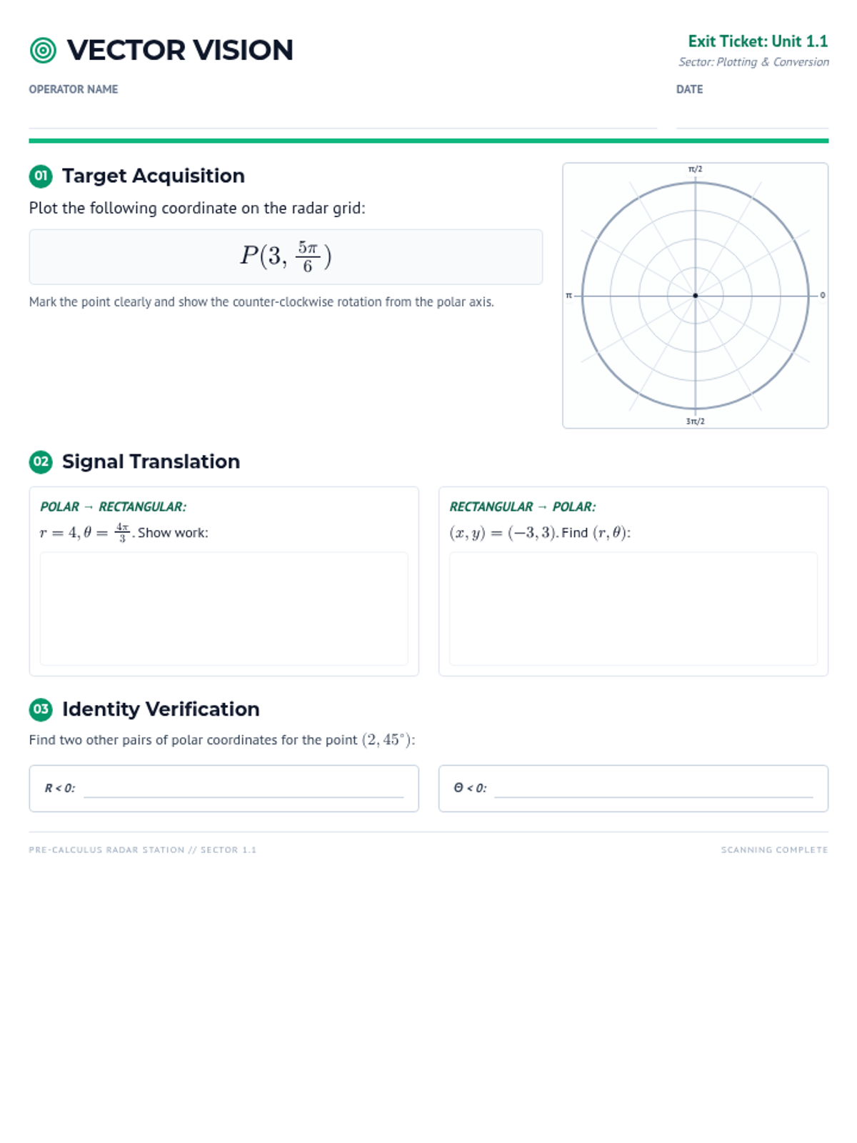 A student-facing trigonometry review sheet styled as an architectural blueprint, featuring a step-by-step checklist, worked examples for sides and angles, and four practice problems with dedicated workspace. Updated for better page flow and to include all three trig ratios.