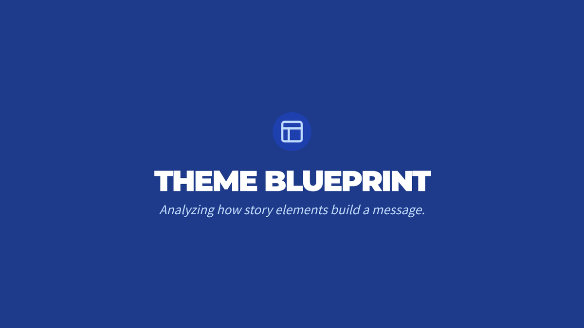 Instructional slides to guide Tier 3 students through the 'Theme Blueprint' lesson, emphasizing story elements like conflict and providing a clear thesis-building formula.