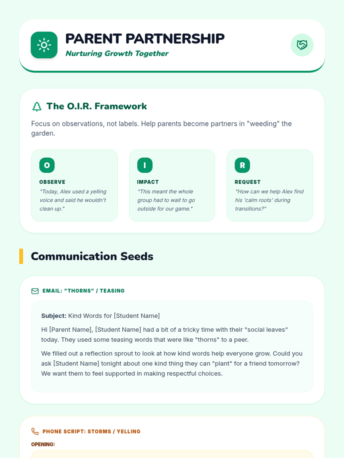 A teacher resource providing templates and frameworks for communicating with parents about difficult middle school behaviors like defiance, yelling, and roasting.
