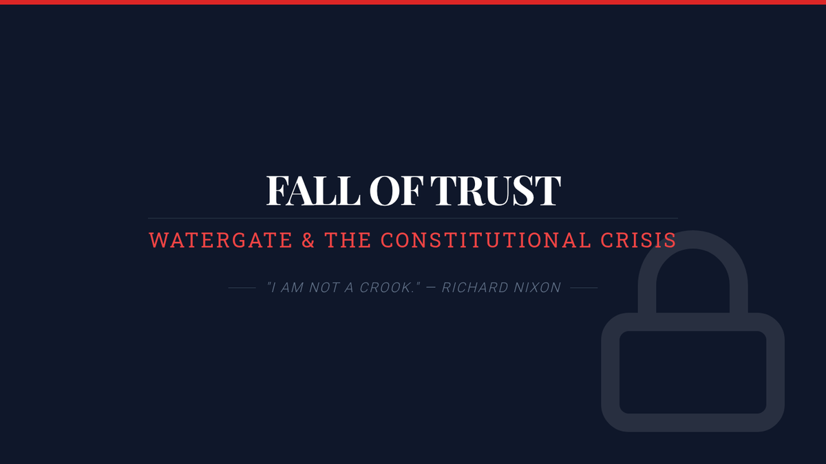 Instructional slides for Lesson 5, covering the Watergate scandal, the Supreme Court decision in US v. Nixon, and the broader political and cultural legacy of the era.