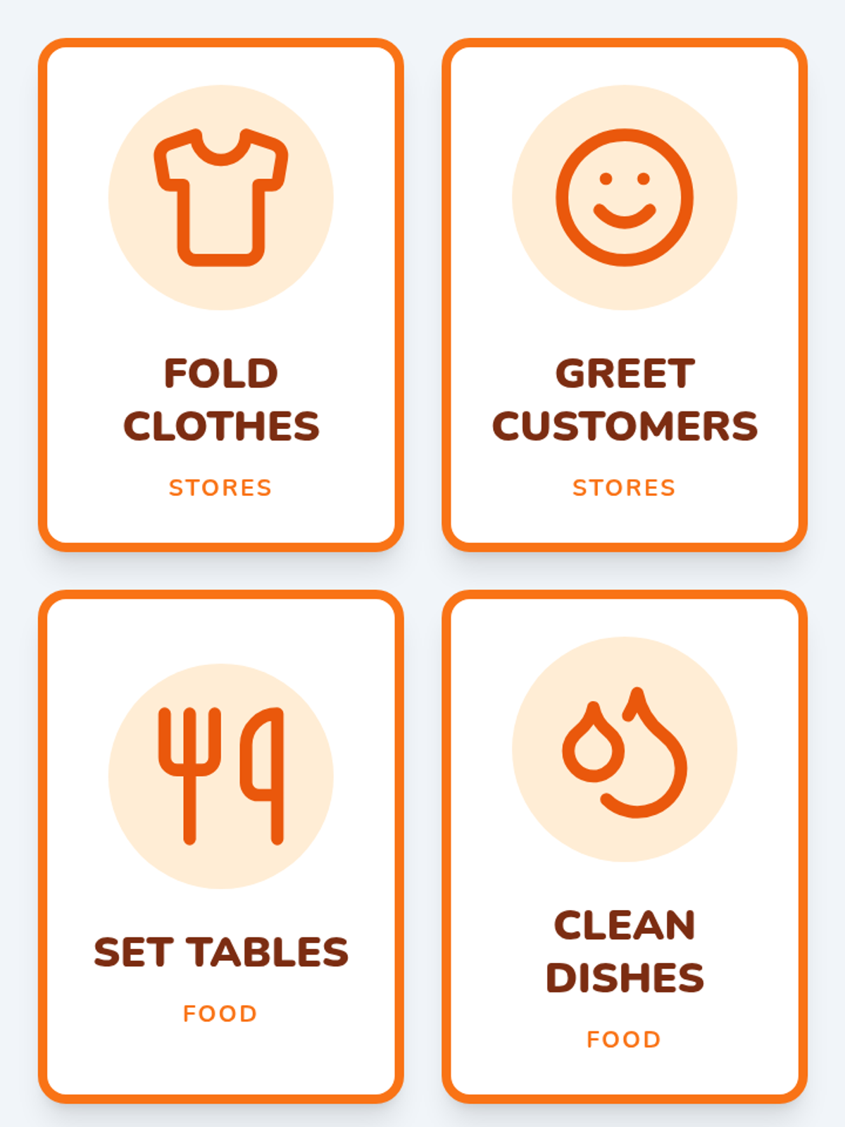A visual presentation deck to introduce students to various vocational tasks. Includes large icons, 2-4 word phrases, and emoji rating visuals for group discussion.