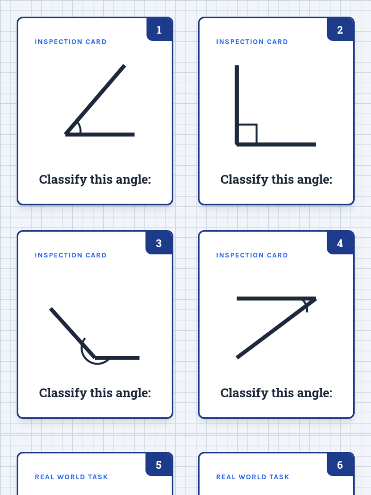 A set of 12 blueprint-themed task cards for small group practice. Includes visual identification, real-world scenarios, and shape analysis. Revised for better page layout and card clarity.