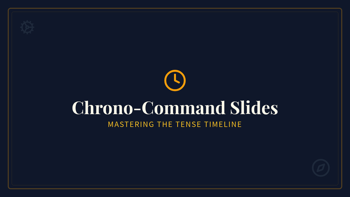 A visual slide deck introducing present, past, and future simple tenses with a time-travel theme. Includes definitions, examples, and interactive shifting practice.