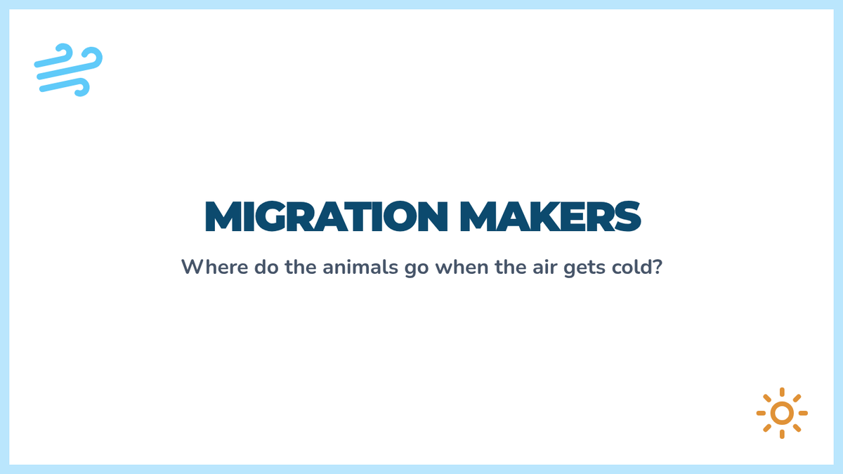 Slides exploring the concepts of migration and hibernation, focusing on animals that travel for winter. Uses simplified vocabulary and high-contrast visual aids.