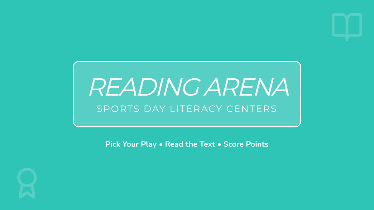 Instructional slides for Sports Day reading centers, introducing three distinct stations: Legendary Leaders, The Great Trophy Mystery, and Sports Around the World.