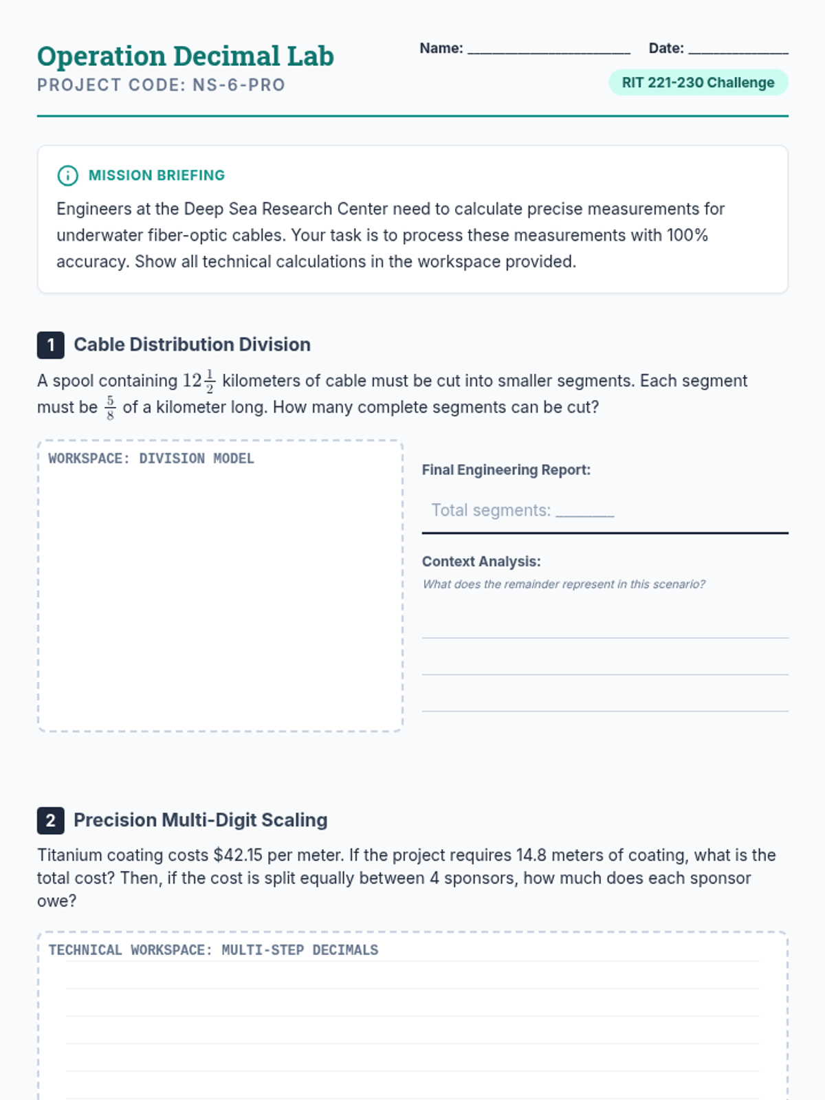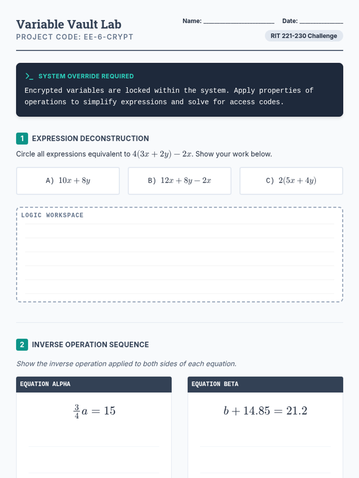 A blueprint-themed worksheet for independent or partner practice. It features tiered problems ranging from counting visual unit cubes to applying the volume formula for cubes and rectangular prisms, ending with a conceptual challenge for advanced learners.