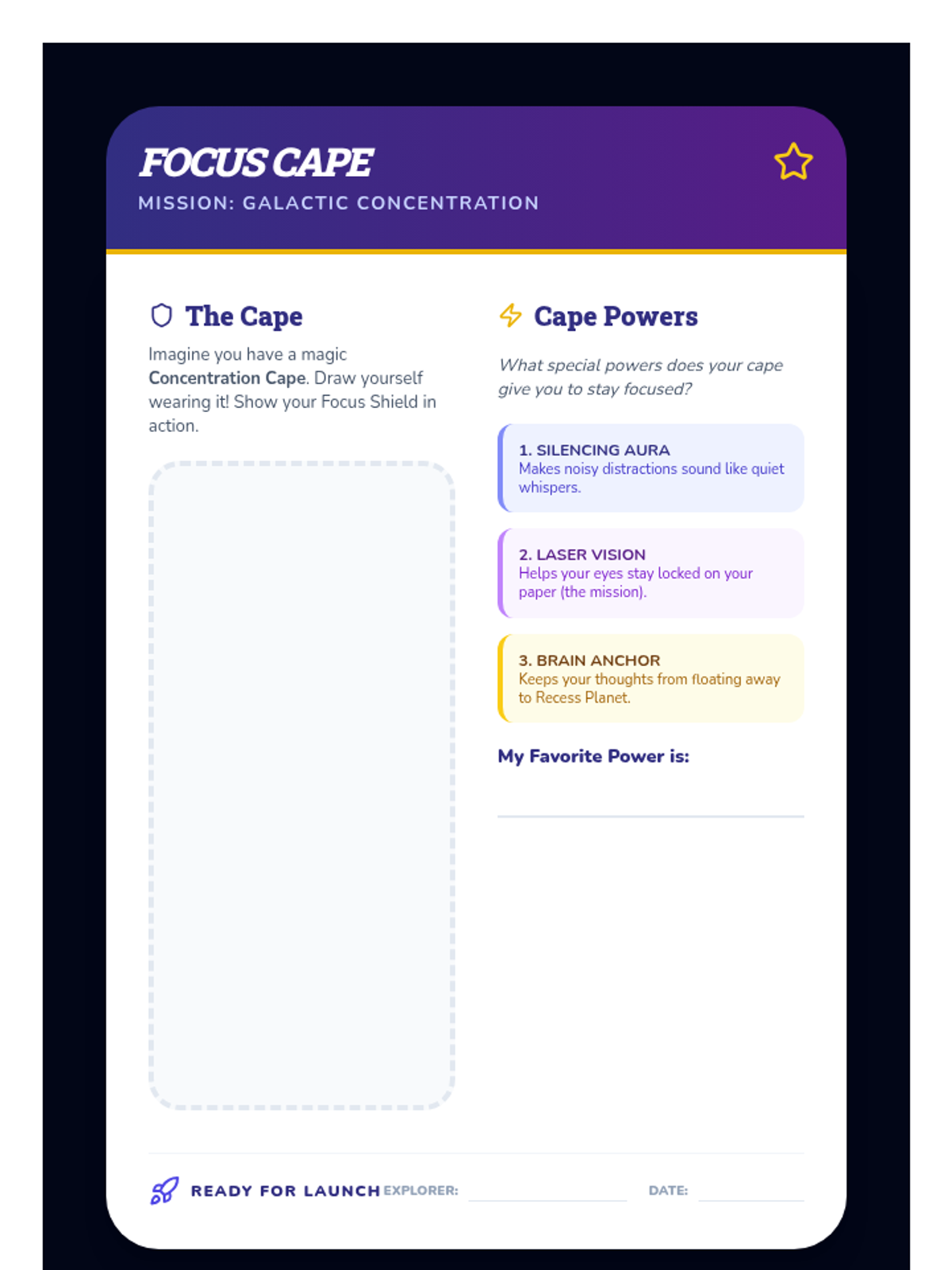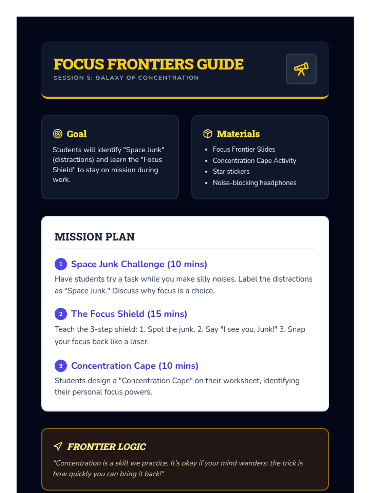 Slides for Session 5 teaching focus and concentration strategies using space themes.
