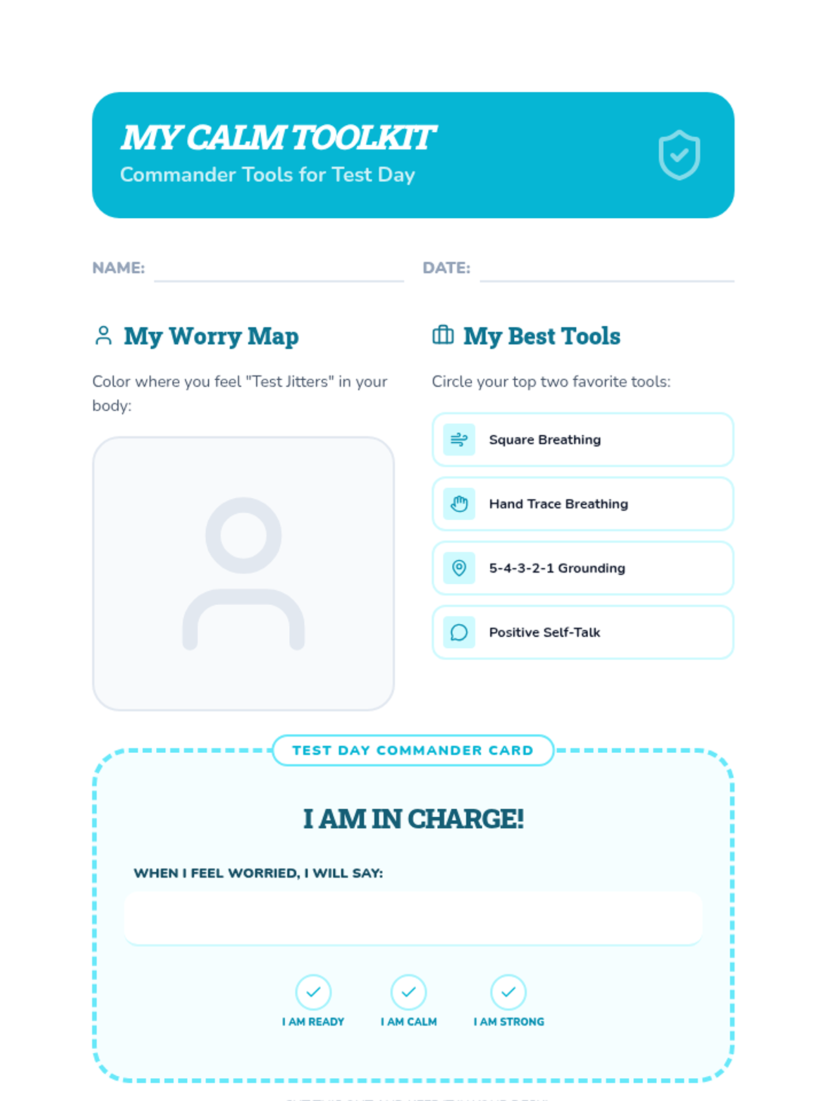 Student worksheet for Session 5, focusing on favorite coping tools and a personalized "Commander Card", optimized for 8.5x11 printing.