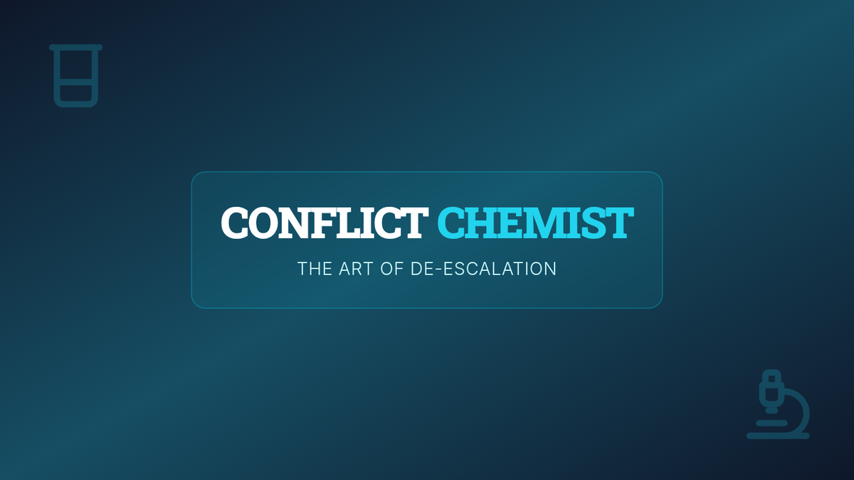 A visually engaging slide deck titled 'Conflict Chemist' that explains the concepts of catalysts (triggers) and inhibitors (de-escalation tools) using a lab-themed metaphor.