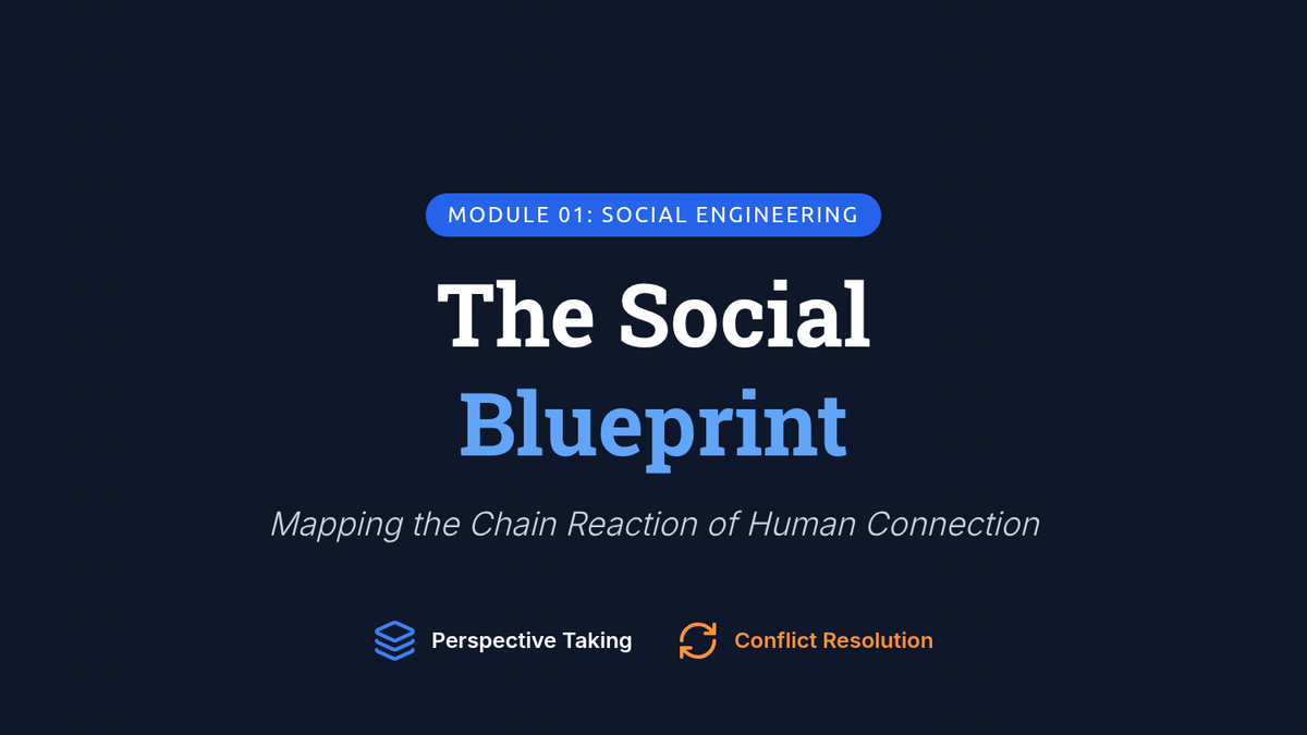 A 5-slide presentation using a 'Social Blueprint' theme to teach the concept of social-emotional chain reactions, focusing on perspective-taking and conflict resolution for 7th graders.