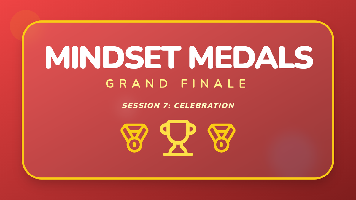 Final celebration slides for Session 7, featuring a trivia game to review growth mindset and test-taking concepts.