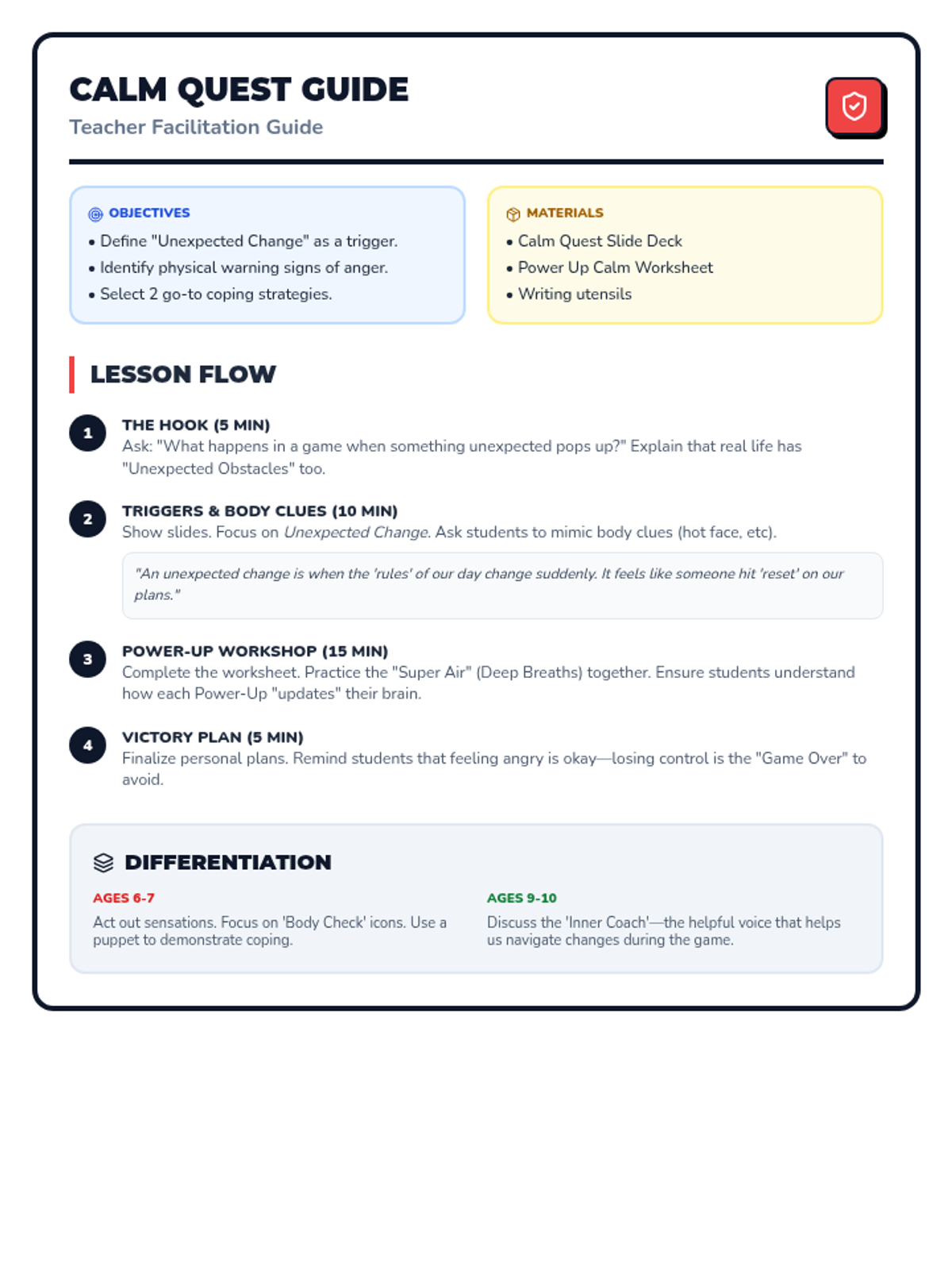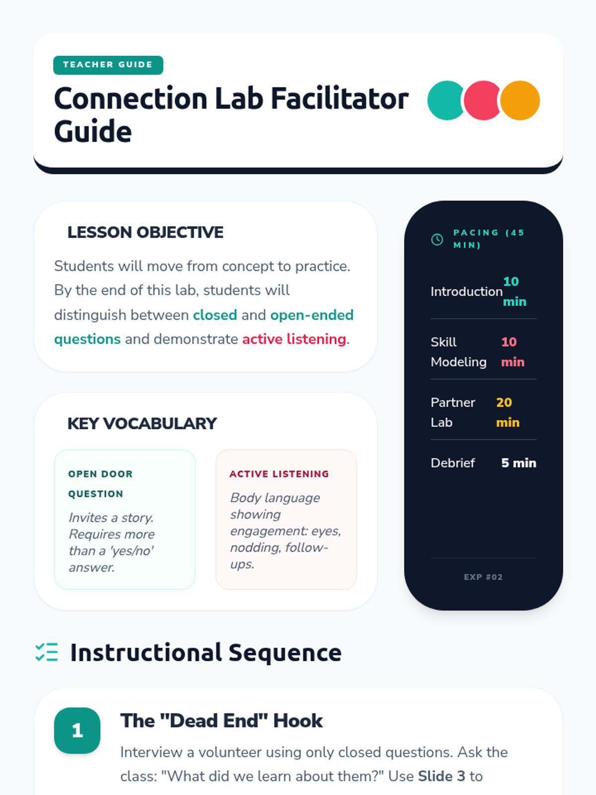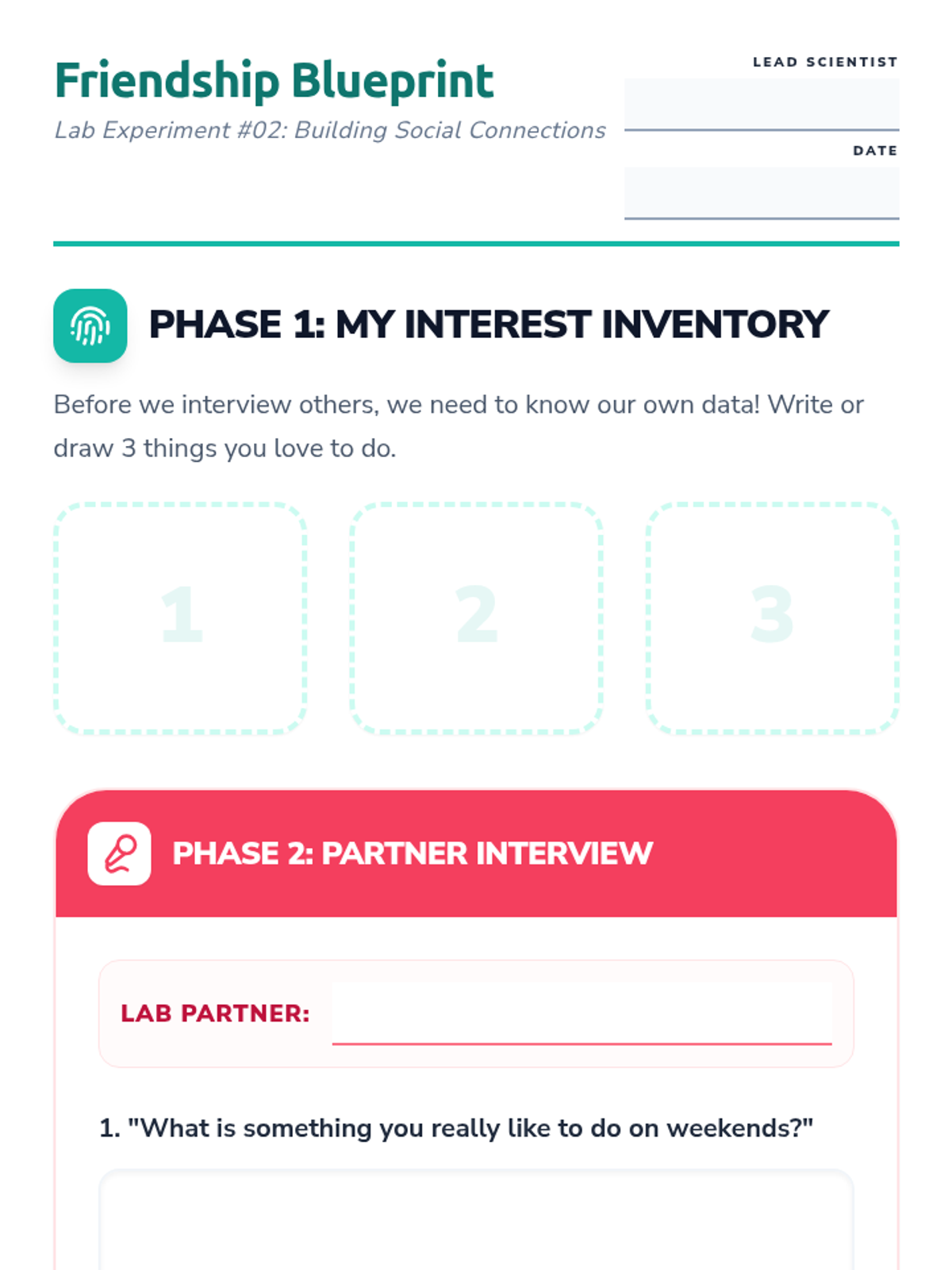 Lesson plan, social story, and exit ticket for Week 4, adjusted for 30-minute session pacing.