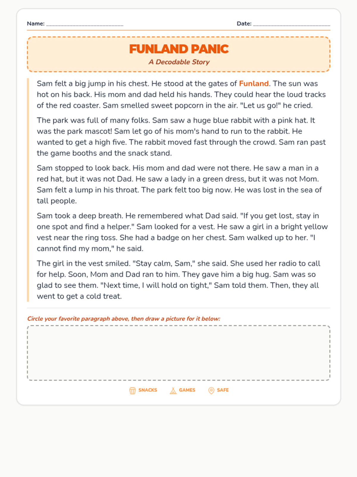 A review worksheet for student practice focusing on sound stretching, initial consonant swapping, and final sound identification.