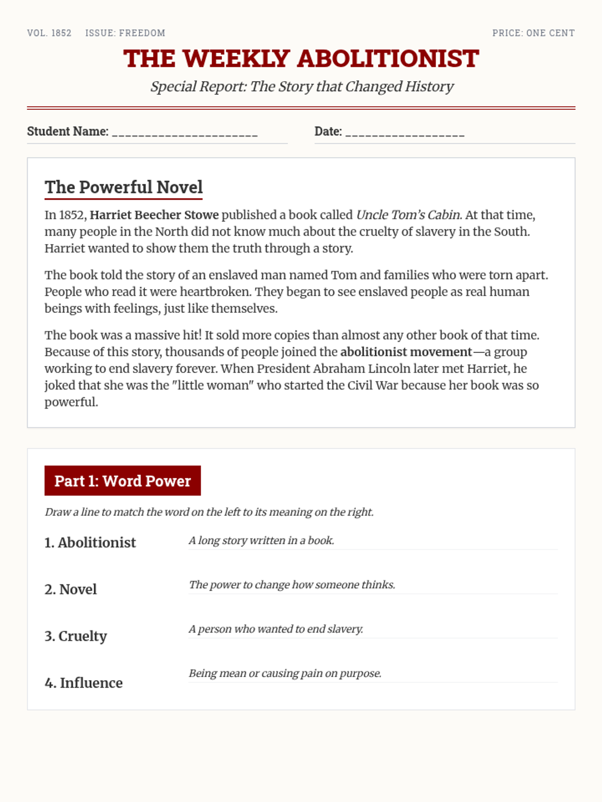 Polished worksheet with refined page breaks after each part. Increased writing space on Page 2 and Page 3 for better student work areas and visual balance. Corrected text alignment in the matching section.