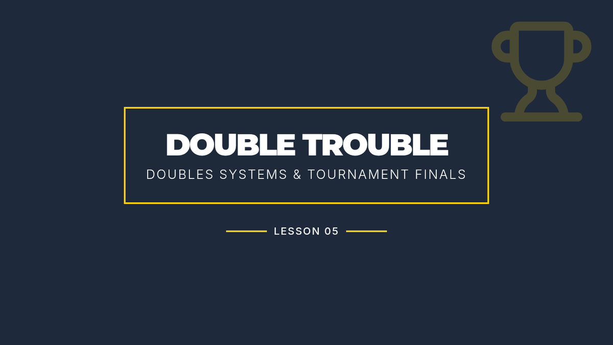 Slide deck for Lesson 5 focusing on doubles rotation systems (side-by-side/front-back), tournament rules, and rally scoring.