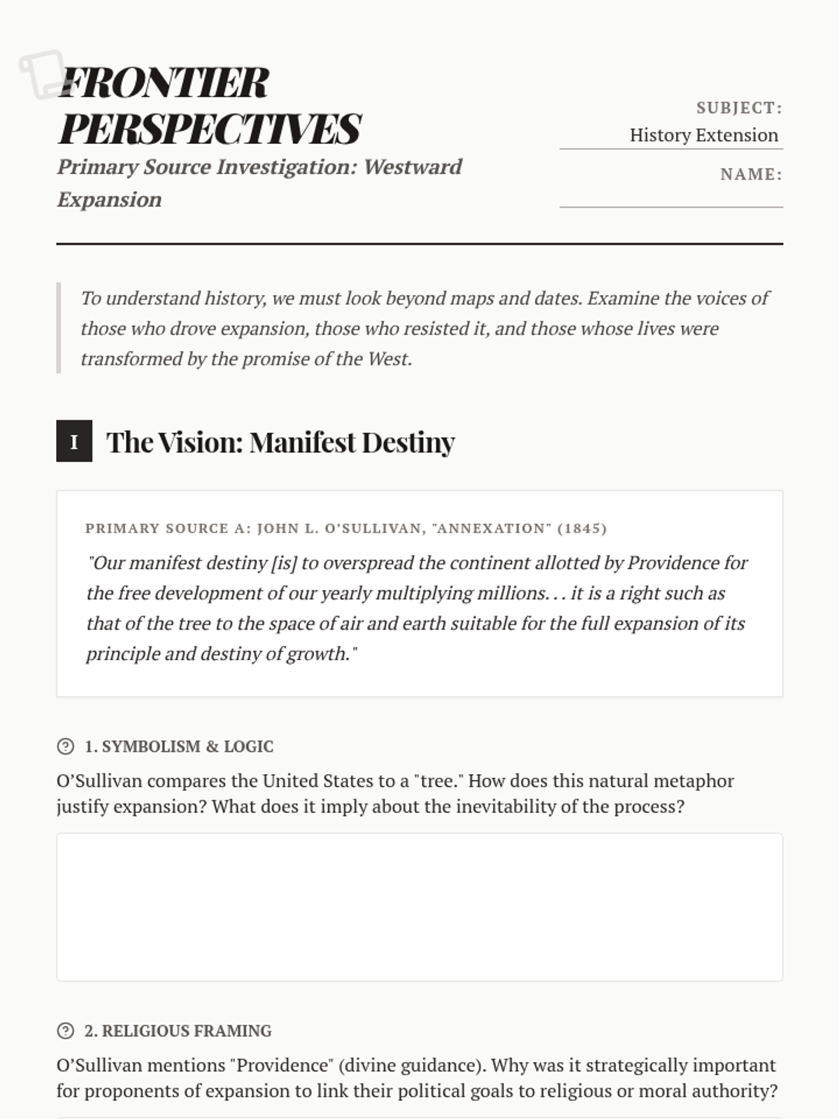 Frontier Perspectives Worksheet