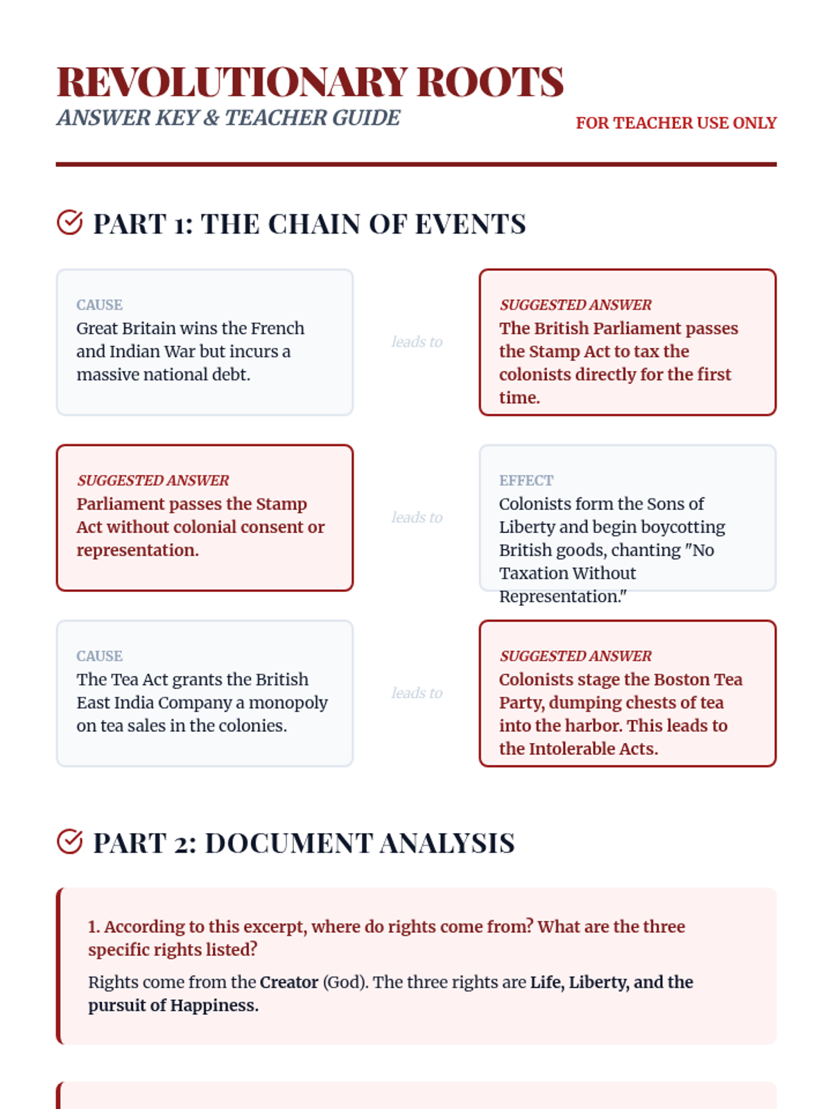 A teacher guide containing pacing suggestions, conceptual hooks, and answer keys for the Revolution Sorting Activity and Scientific Spark Reading Document.