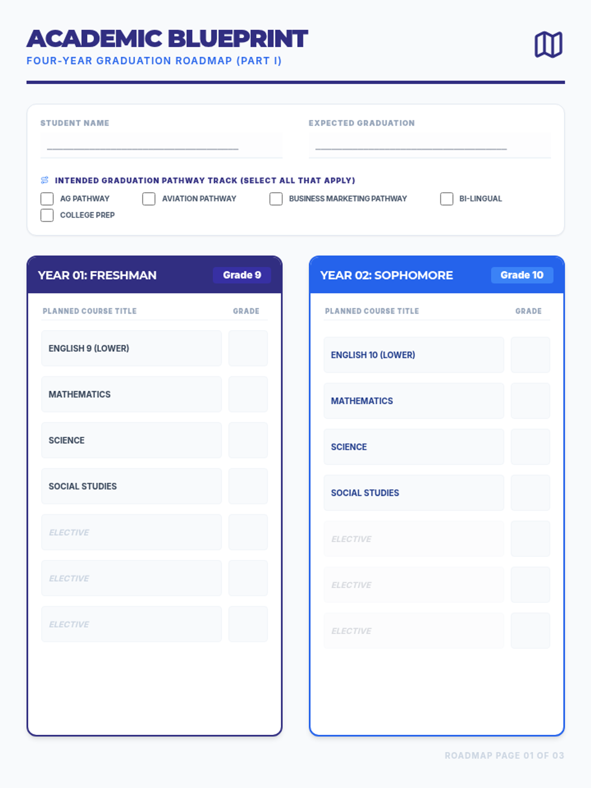 A high-density, professional Career Blueprint for high school students. Designed with a clean minimalist aesthetic and strictly formatted to fit 100% on a single 720x960 page using a safe height buffer. Guaranteed no page splitting.
