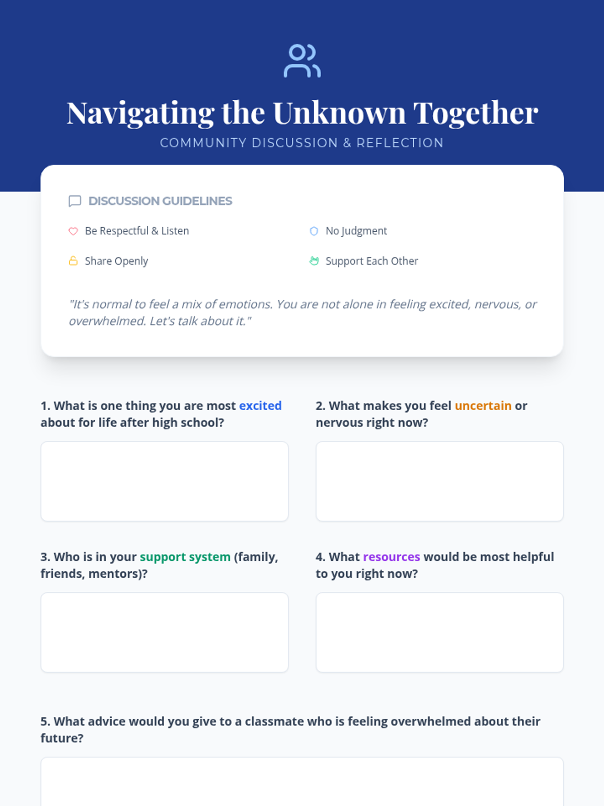 Peer relationship navigation, conversational turn-taking, and stress management strategies within supportive group settings. Develops communal belonging through shared mental health education and collaborative skill practice.